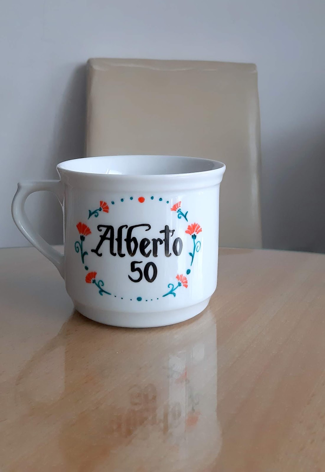 Ime na skodelici kot darilo za 50. rojstni dan (leva)